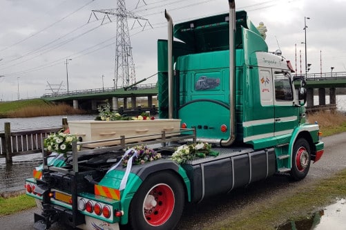 Uitvaartverzorging De Laatste Groet kan door een verfijnde samenwerking een beroep doen op niet alleen een zwarte / grijze rouwauto, maar ook op tal van andere kleuren auto’s en andere soorten (duurzame) rouwvervoersmiddelen. U kunt hierbij denken aan een koets getrokken door paarden, een uitvaartbus of uitvaartframe t.b.v. eigen vrachtwagen. Wanneer de wens is om een eigen vervoersmiddel in te zetten, kan dit afhankelijk van het vervoersmiddel zeker geschikt zijn hiervoor. Uitvaartverzorging De Laatste Groet staat u hierbij van dienst en maakt het voor u mogelijk!